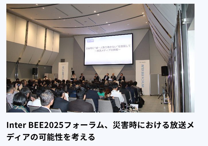 11月19日~21日の3日間、幕張メッセで開催された、メディア&エンターテインメント産業の総合イベント、InterBEE2025。私が企画・モデレーターを担当した3つのセミナーの3つ目、「災害時に“誰一人取り残さない”を目指して ~放送メディアの挑戦~」の配信が開始されました。
