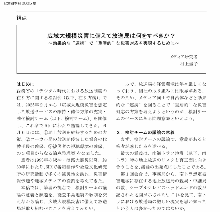 【7月4日 民放四季報で災害とメディアに関する原稿を書きました】
