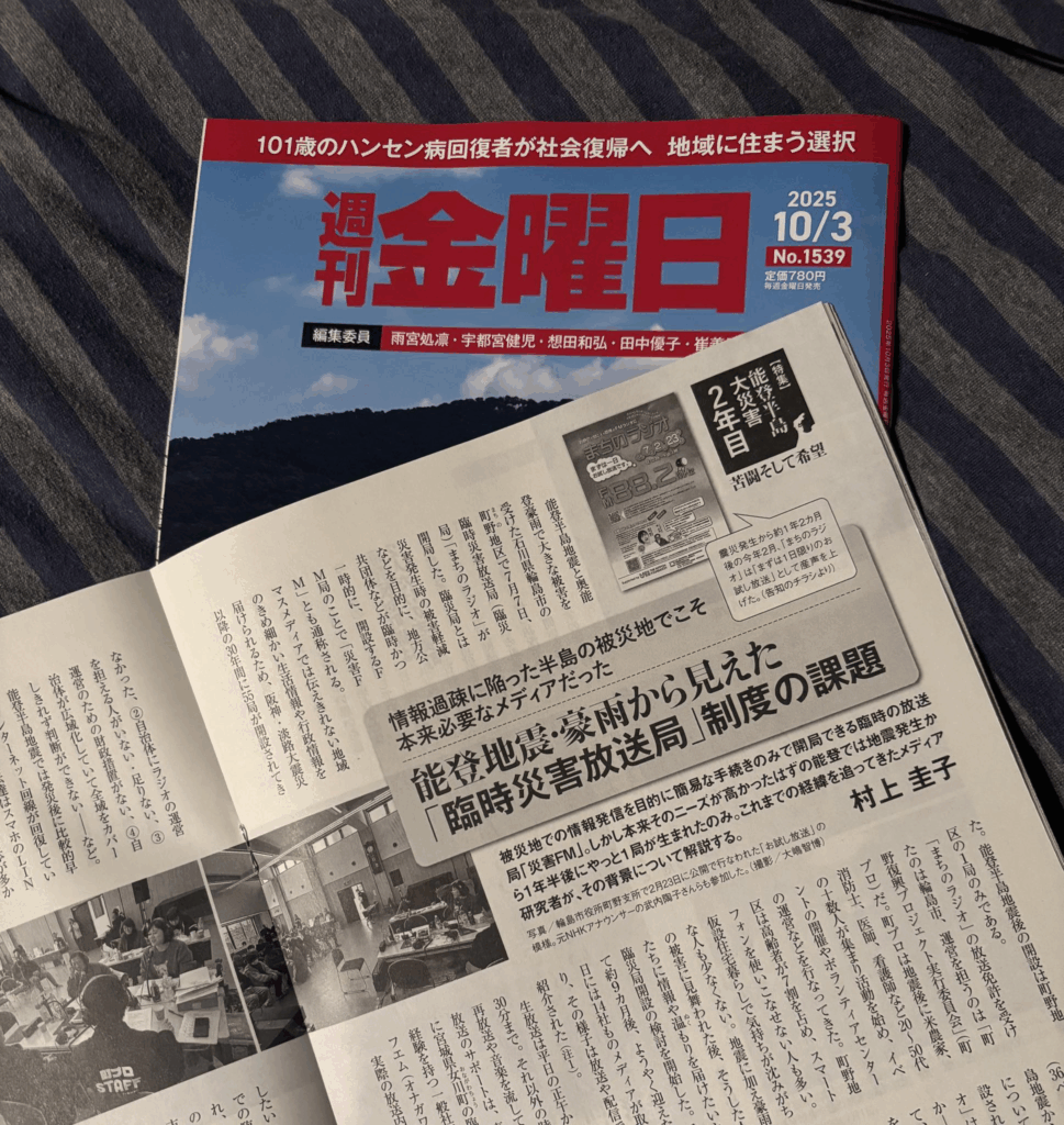 【10月3日発行「週刊金曜日」で臨時災害放送局の制度的課題を執筆】