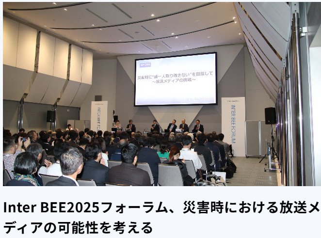 【12月4日】 電波タイムスで、企画・モデレーターをつとめた「InterBEEフォーラム2025~災害時における放送メディアの可能性を考える」が記事になりました。https://www.dempa-times.co.jp/broadcast/39457/