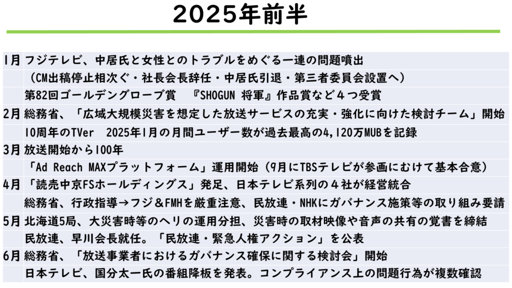 以下、私が2025年に重要だと感じた放送・メディアを巡る動きについても示しておく。