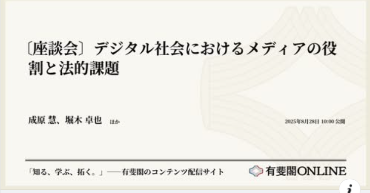 有斐閣ONLINEロージャーナルの特集「メディアと法」で、座談会「デジタル社会におけるメディアの役割と法的課題」に参加しました。NHKのネット活用業務必須業務化について思うところを、職員を辞めてから初めて語りました。座談会のテーマは多岐にわたりましたが、NHKのネット活用に関する部分だけ以下にまとめておきます。